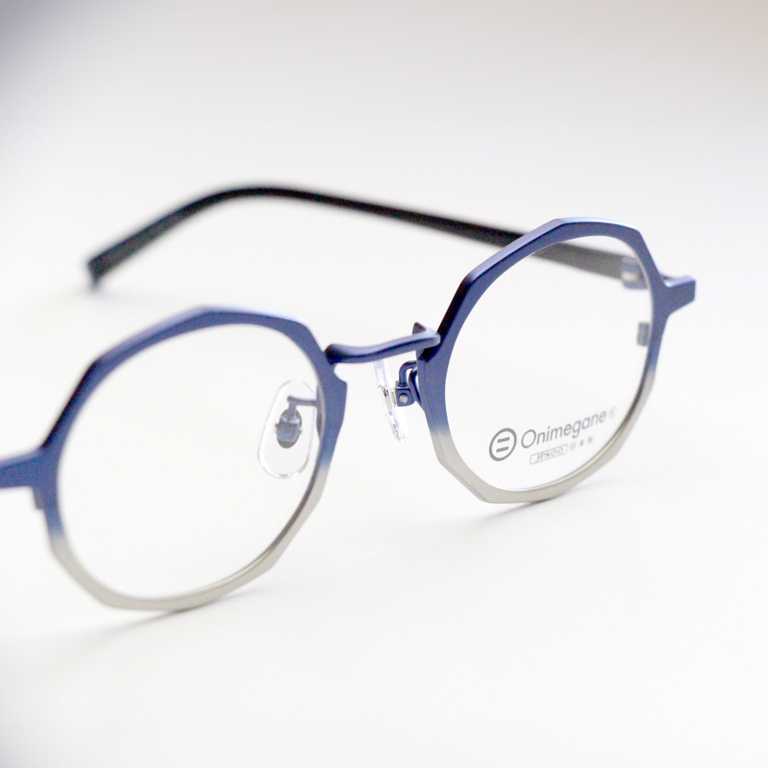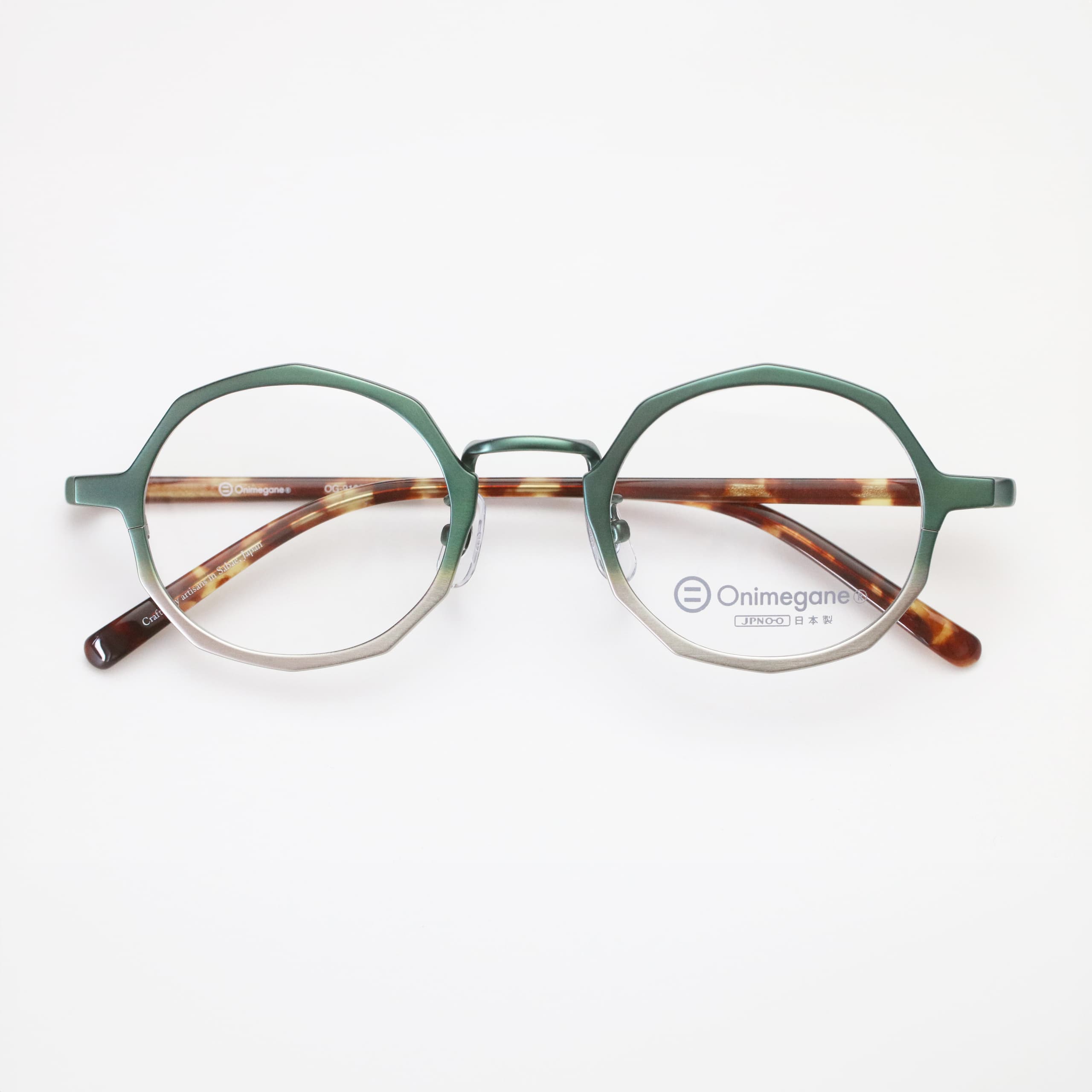 Onimegane®2023年新型モデル。十角形のラウンド型。OG-7102をメタルフロントで再構築。シンプルモダンなデザインでどんな場面でも使用できる使いやすいめがね。フロントチタンとセル手の組み合わせでめがねとしての機能性は高く、シンプルな作りでお手入れもしやすいモデル。※フロントデザインは7102と同型ですが、素材の差があるため同じレンズが流用できるかは運です。